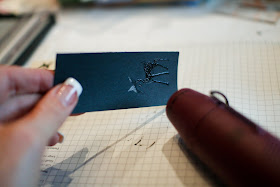 I wanted to get the same look but with a lot less detail, of course. I started by stamping this sweet little fairy-tale-esque deer onto black paper with a craft ink, and sprinkiling it with clear embossing powder.